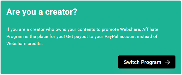 If you are a creator who owns your contents to promote Webshare, Affiliate Program is the place for you! Get payout to your PayPal account instead of Webshare credits.
